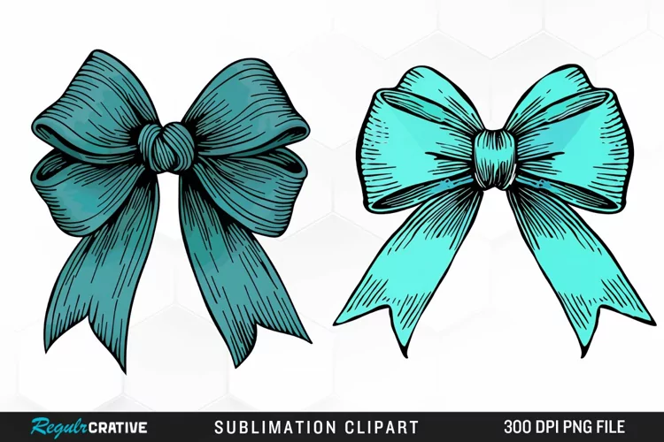 Similar Design Products to Watercolor Teal Bow Illustration PNG Clipart