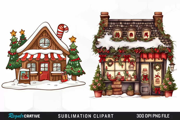 Similar Design Products to Watercolor Christmas Shop Art Clipart