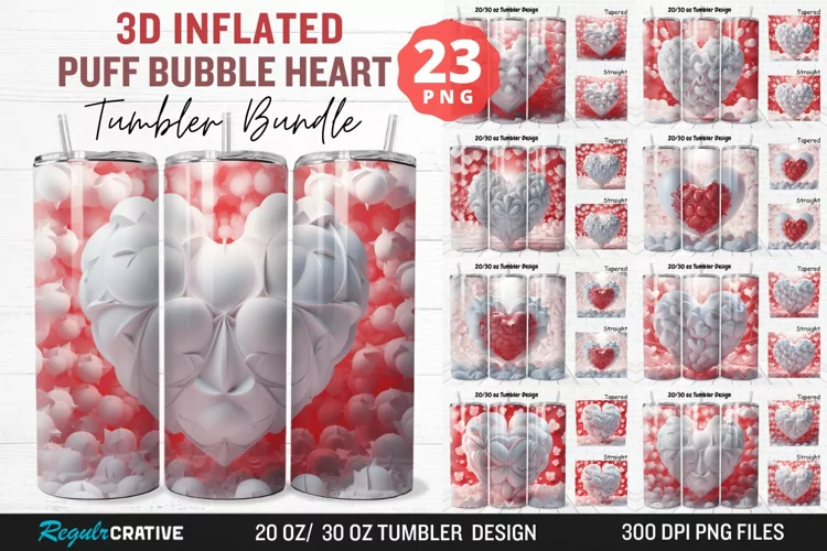 3D Inflated Puff Bubble Heart Tumbler Bundle example image 1