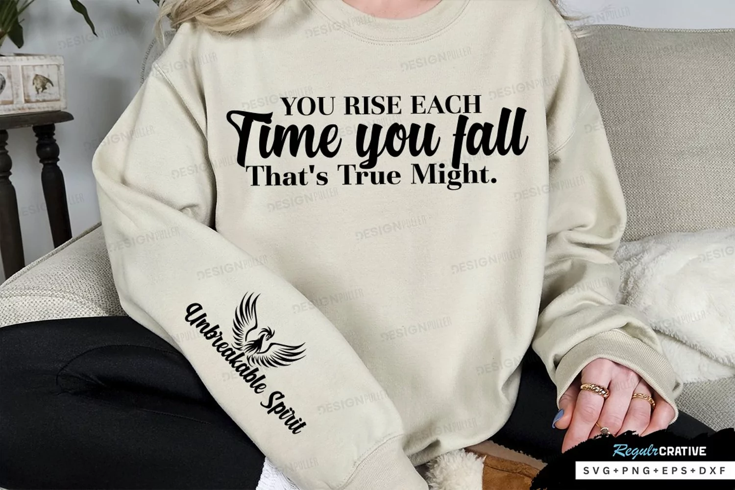 Motivational Svg Encouraging Words Svg Resilience Quote Svg Motivational Sweatshirt Svg Inspirational Clothing Svg Overcoming Adversity Png You Rise Each Time You Fall Sleeve Svg True Might Quote Png Rise Up Message Png Strength In Struggle Png