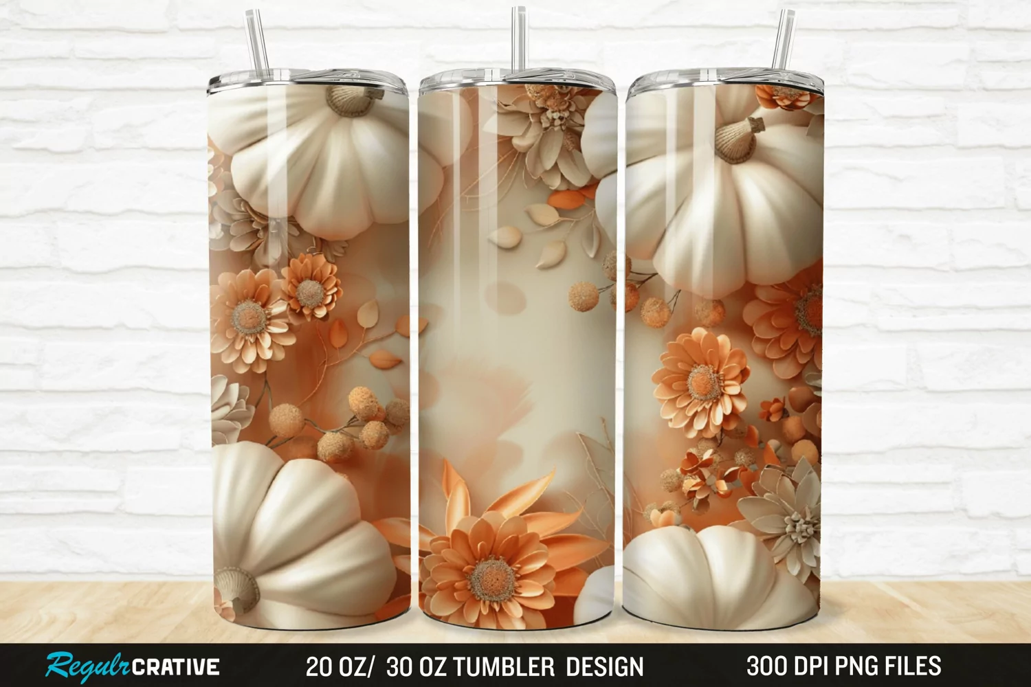 3D Autumn Fall Floral Pumpkins 20/30oz Skinny Tumbler example image 1