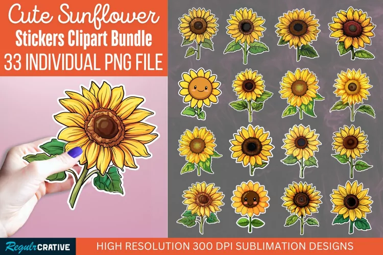 Cute Sunflower Stickers Clipart Bundle