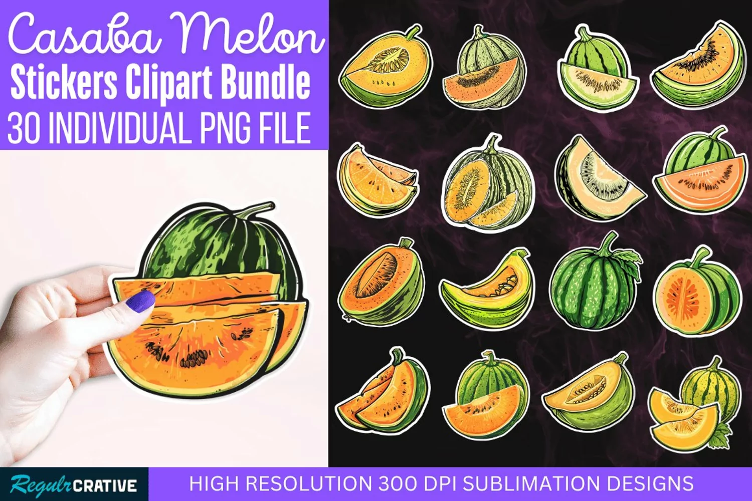 Similar Design Products to Casaba Melon Stickers Clipart Bundle, Printable Stickers