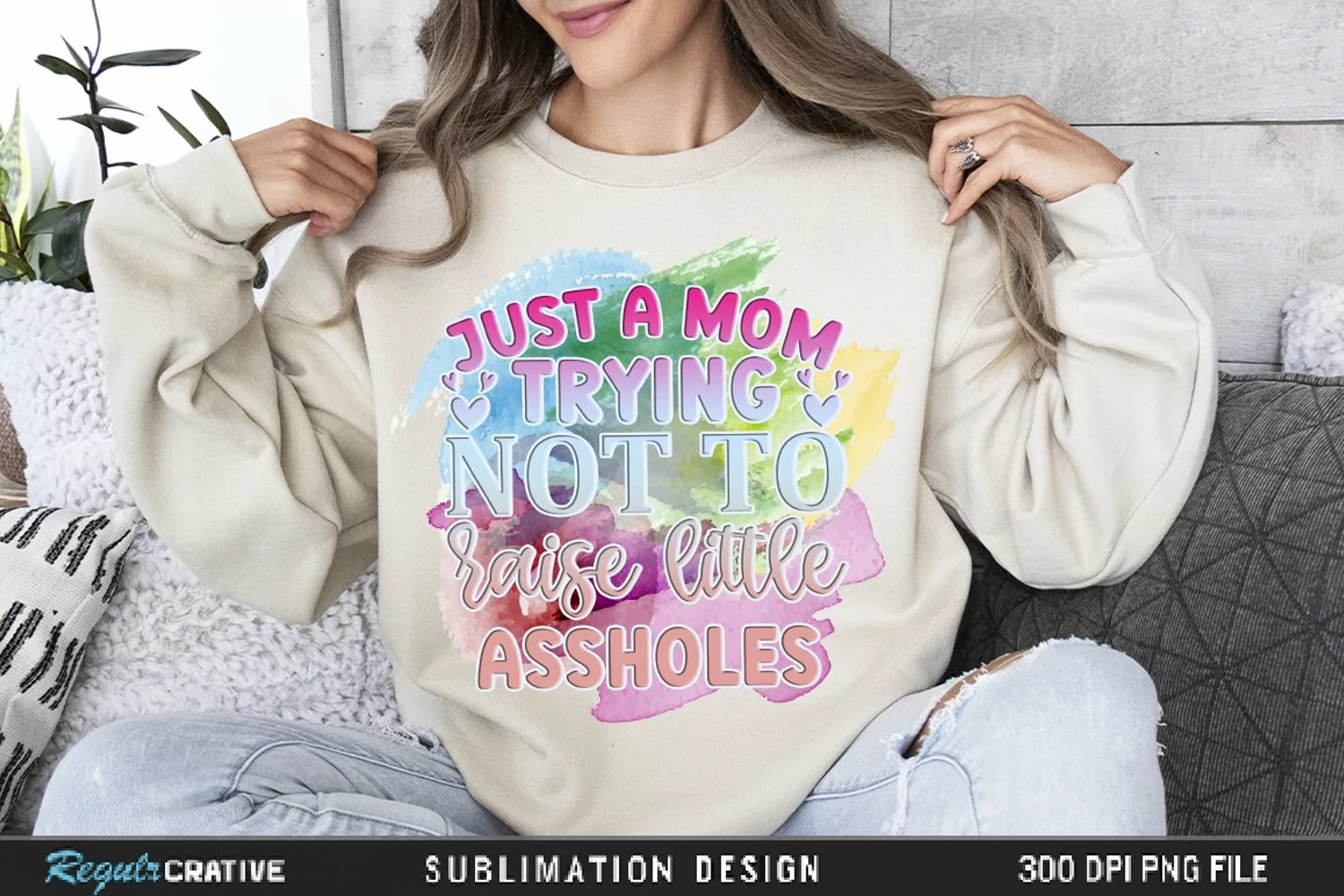 Just A Mom Trying To Not Raise Little Sublimation PNG was created by hand and then converted to a digital file.