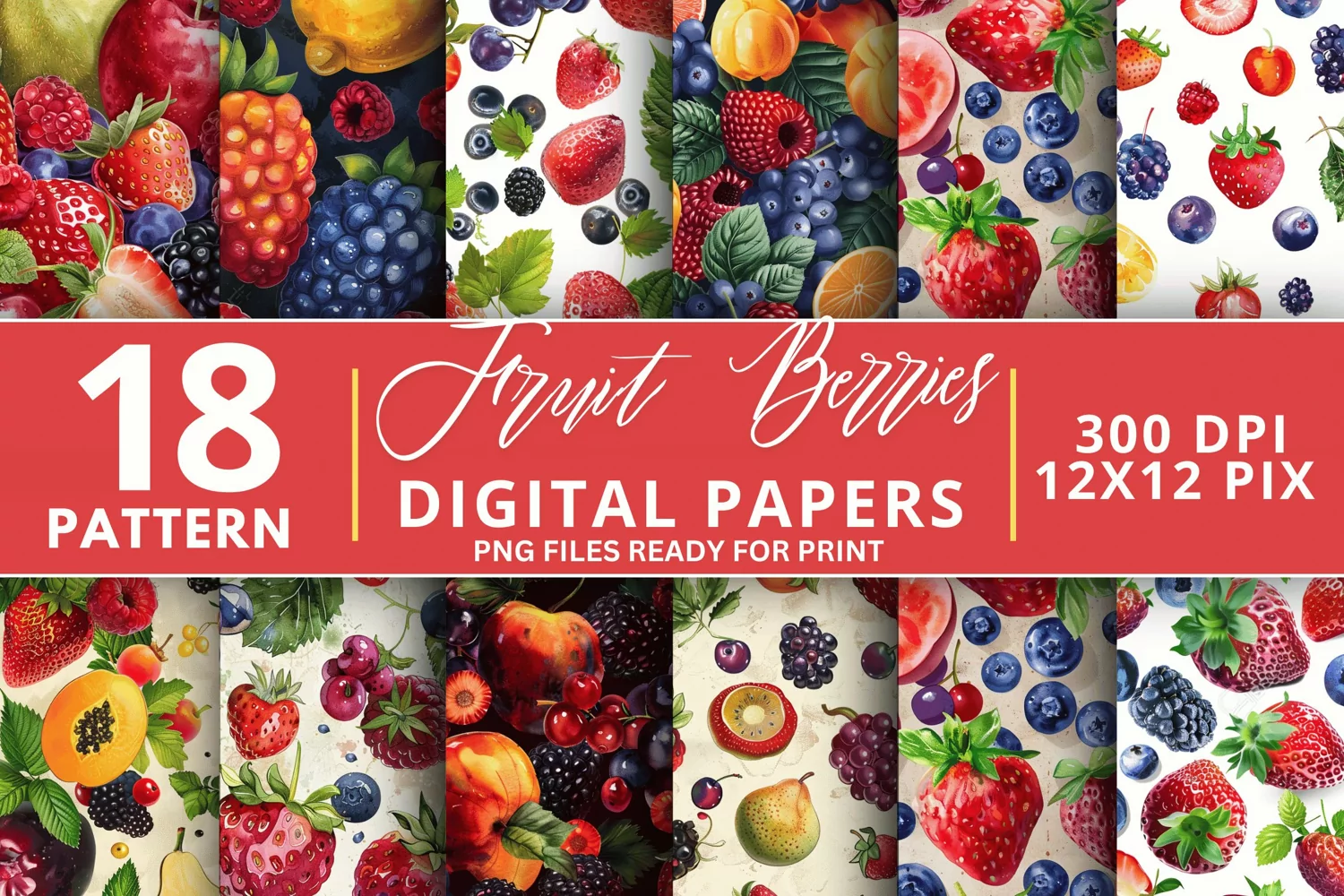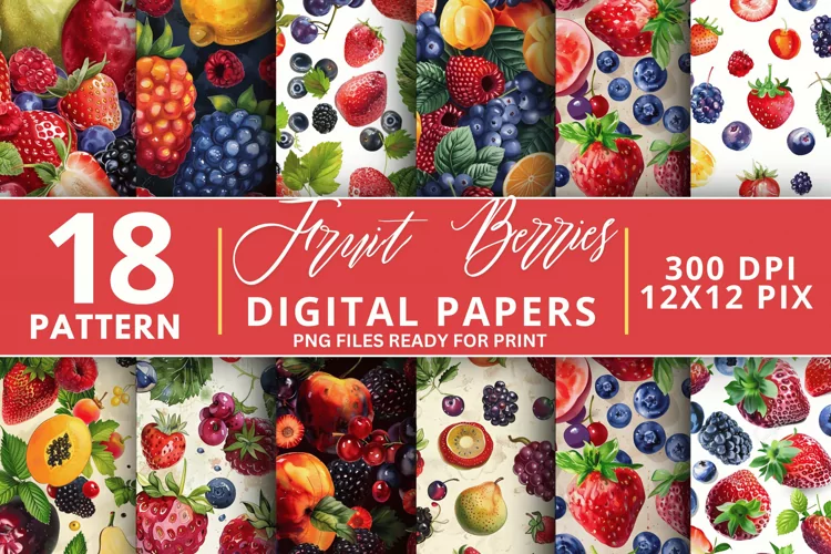 Fruit Berries Seamless Digital Paper Bundle