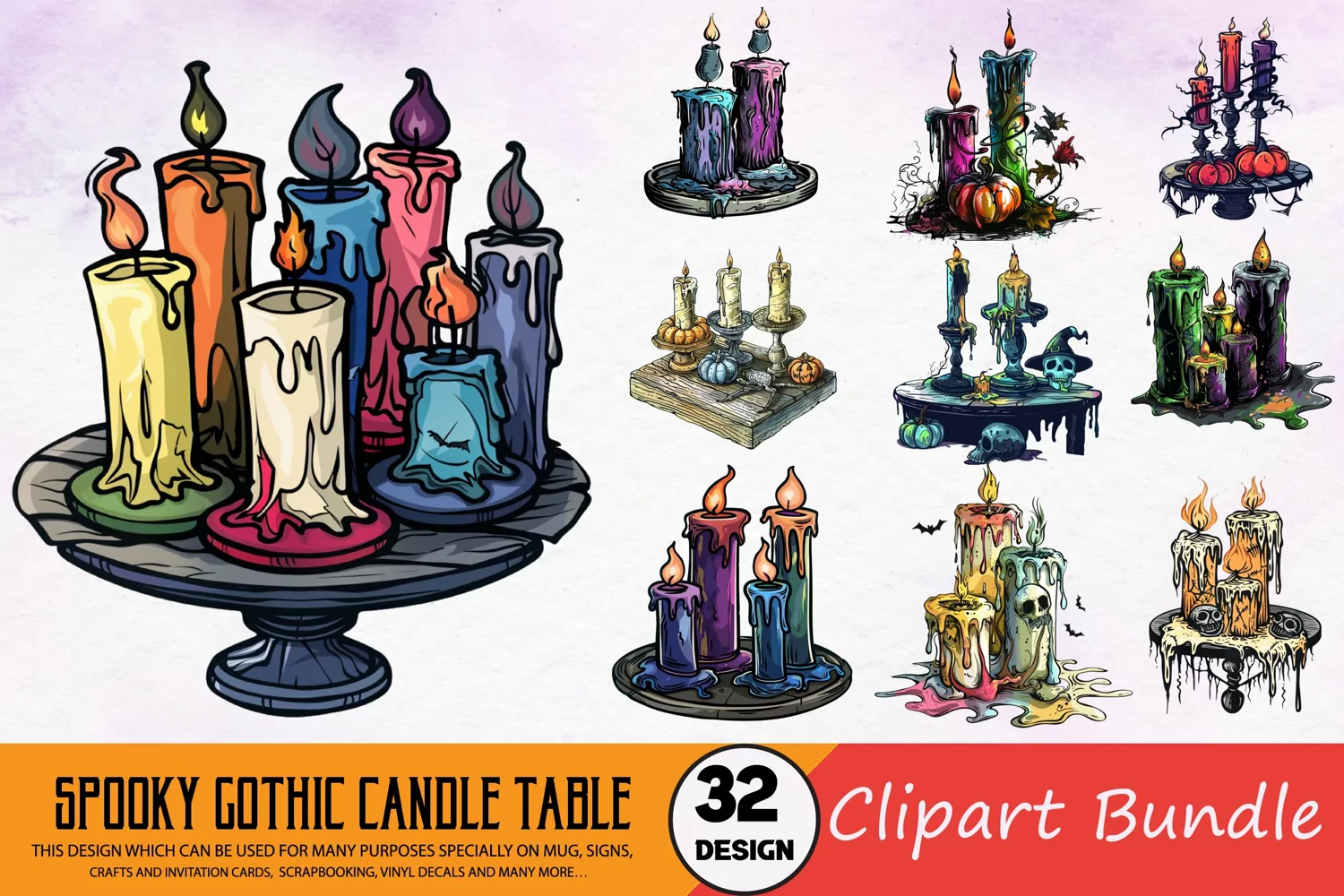 Similar Design Products to Spooky Gothic Candle Table Clipart Bundle