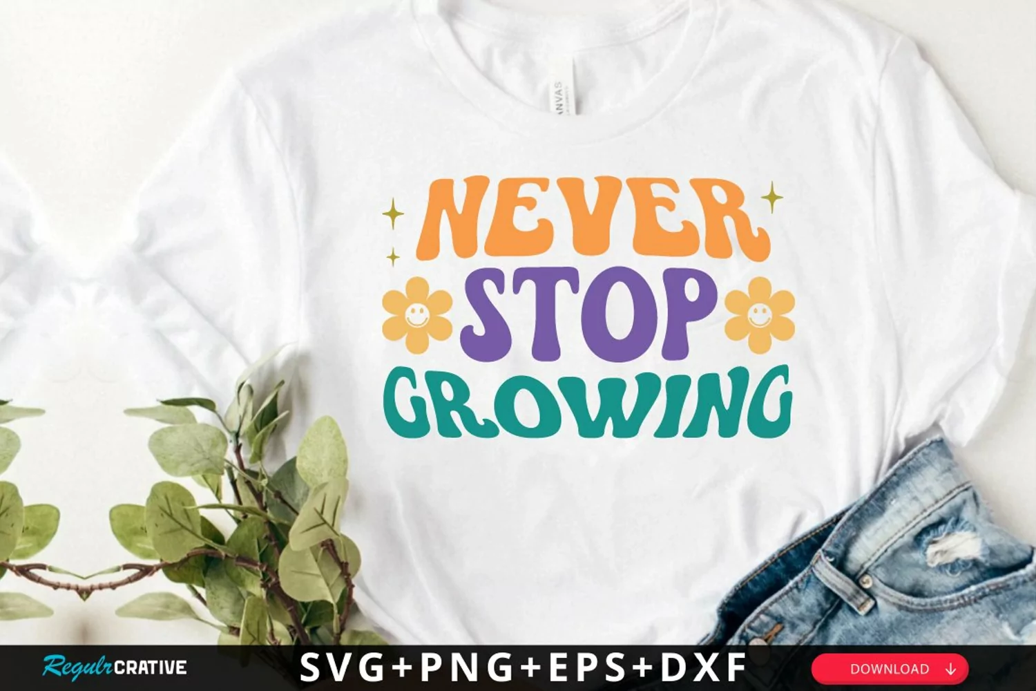 Never Stop Growing SVG, Positive Quotes SVG Design