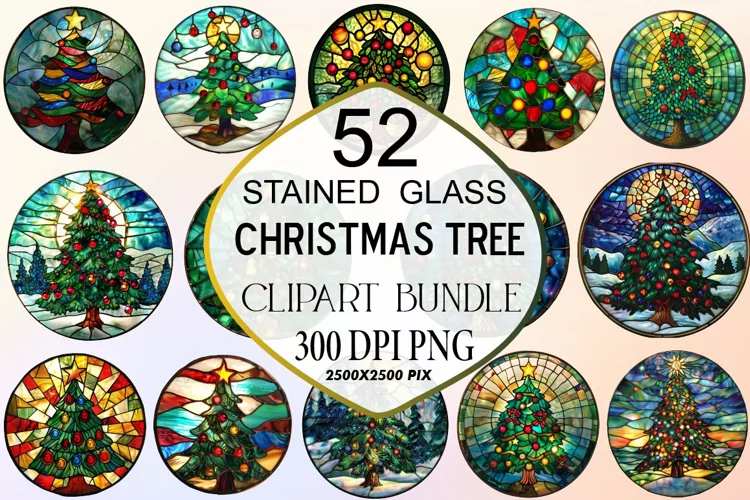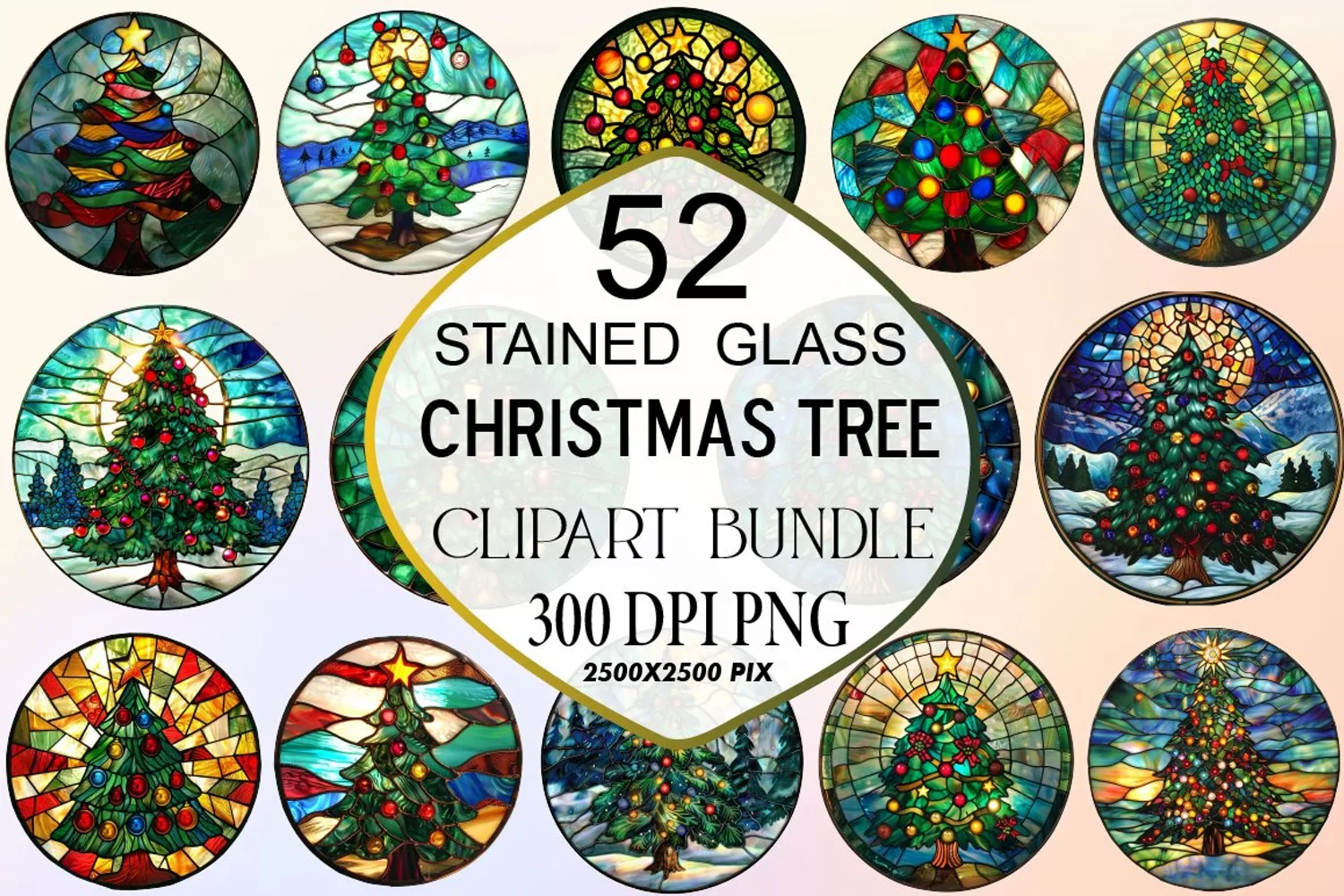 Similar Design Products to Stained Glass Christmas Tree Clipart Bundle