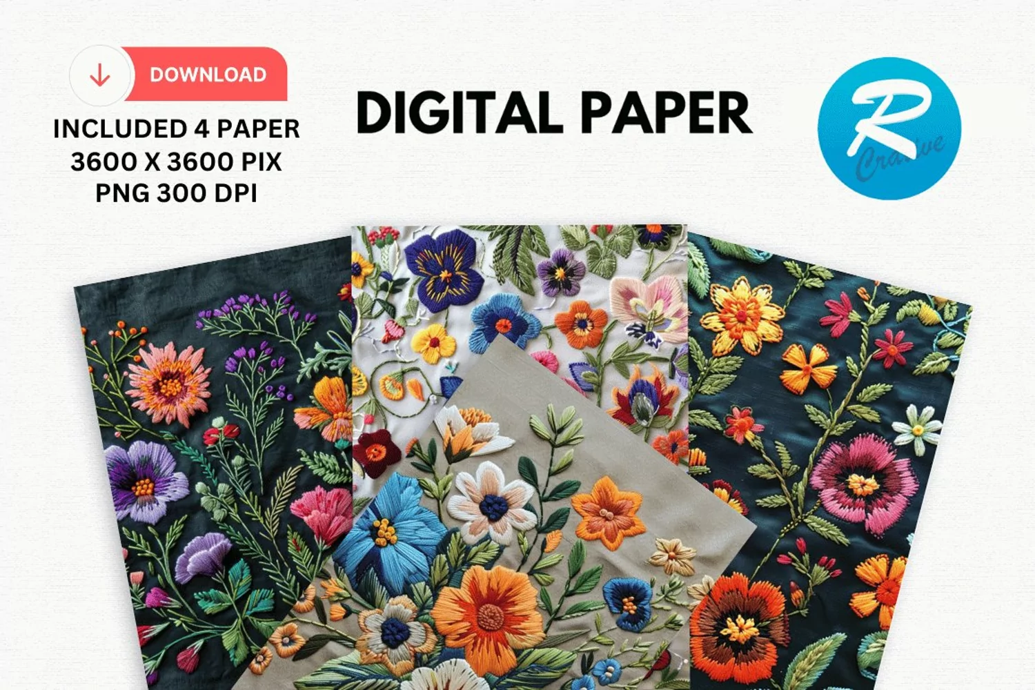 Flowers Background Embroidered Flowers Day Digital Paper Embroidered Digital Papers Embroidery Design Digital Papers Stitched Pattern Digital Papers Embroidered Texture Digital Papers Digital Papers With Embroidery Designs Hand-stitched Digital Paper Backgrounds Intricate Embroidery Digital Papers Digital Papers Featuring Embroidery