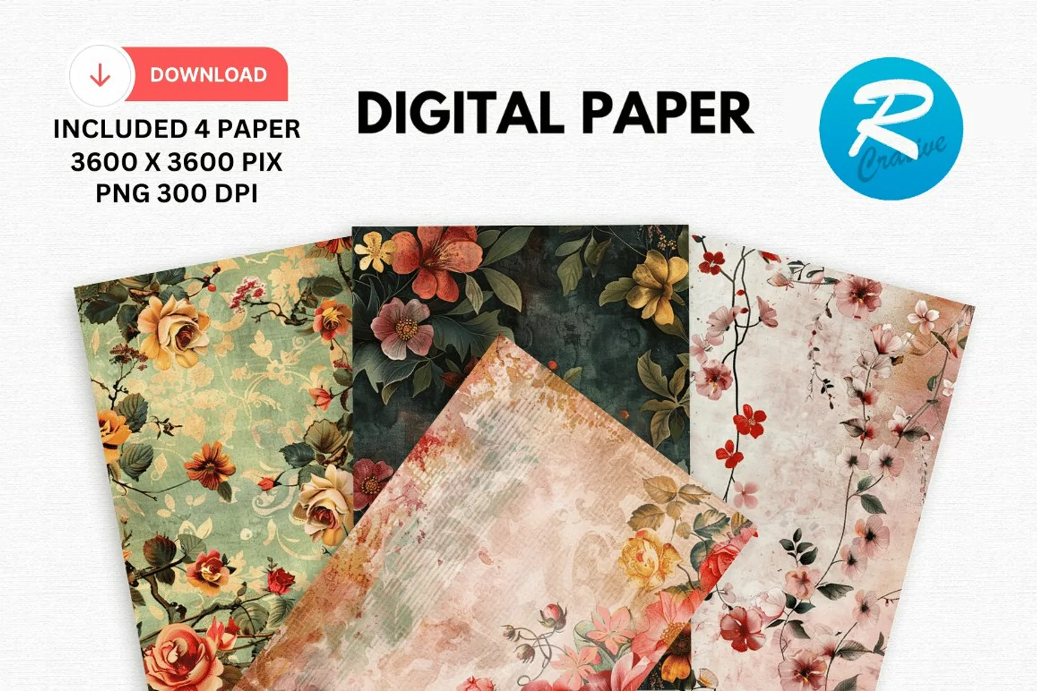 Floral Digital Paper Floral Background Floral Digital Papers Floral Scrapbooking Papers Vintage Floral Digital Papers Watercolor Floral Papers Botanical Digital Paper Designs Flower Pattern Digital Papers Garden Floral Digital Papers Elegant Flower Digital Patterns