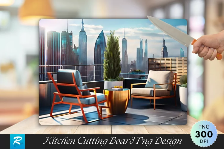 Chairs on Rooftop Cutting Board Sublimation Design example image 1