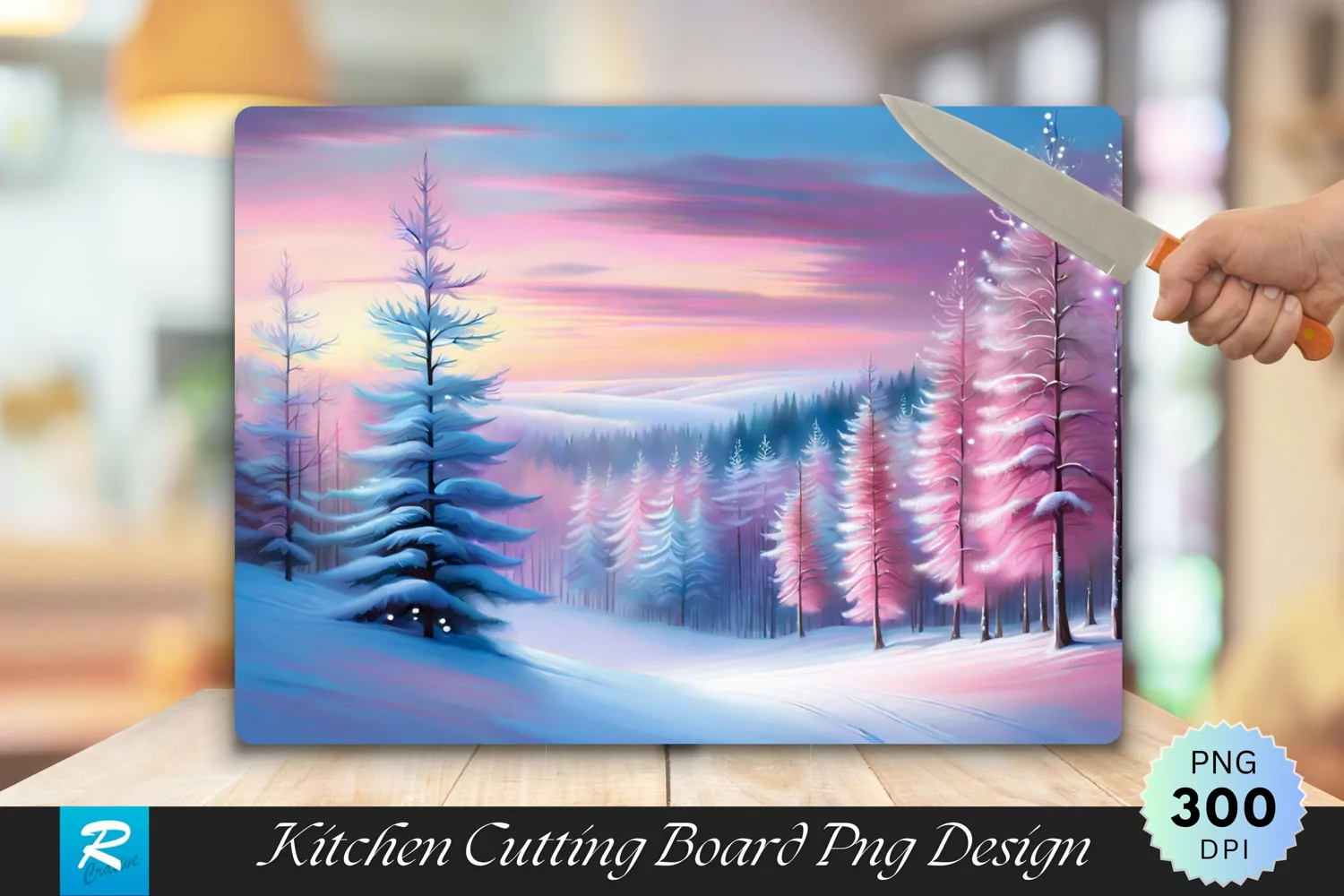 Serene Snowy Forest Scene Cutting Board PNG Design
