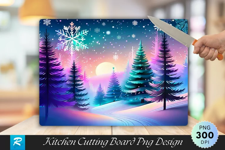Kitchen Decor Sublimation Design Christmas Cutting Board Personalized Cutting Board Glass Cutting Board Custom Cutting Board Winter Cutting Board Forest Cutting Board Holiday Cutting Board Sparkle Cutting Board