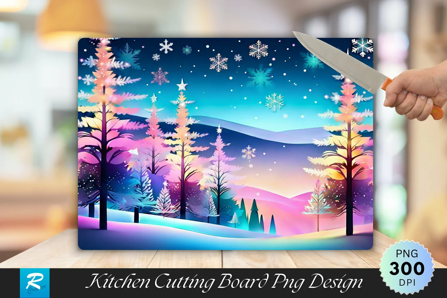 Kitchen Decor Sublimation Design Christmas Cutting Board Personalized Cutting Board Glass Cutting Board Custom Cutting Board Winter Cutting Board Forest Cutting Board Holiday Cutting Board Sparkle Cutting Board