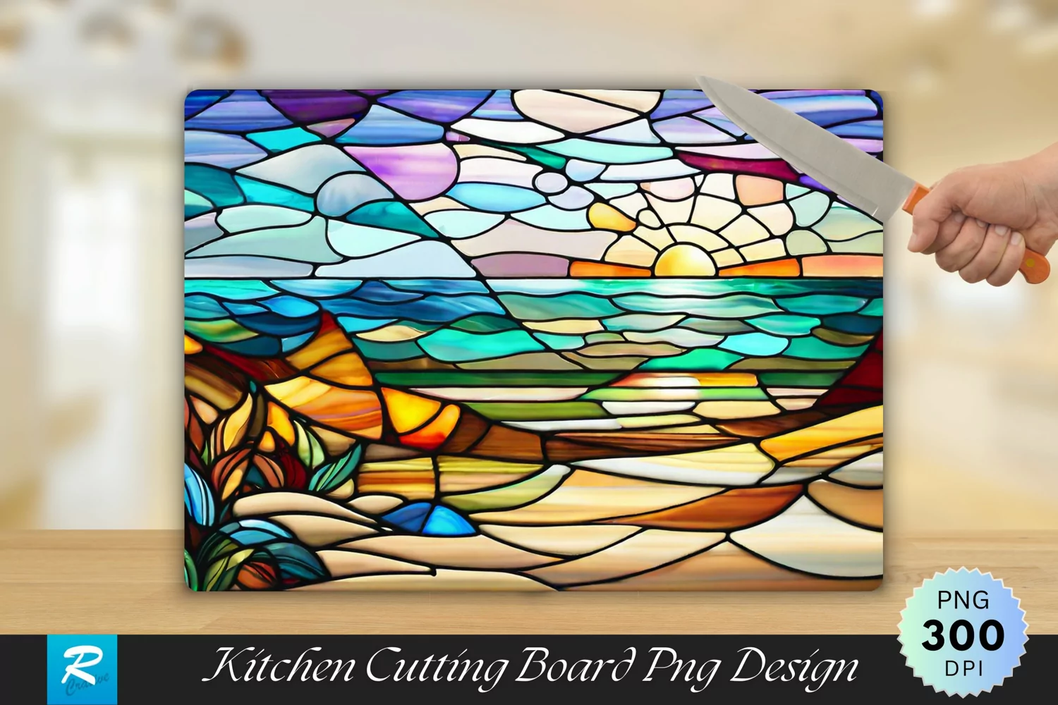 Beach Stained Glass Cutting Board Sublimation Design example image 1