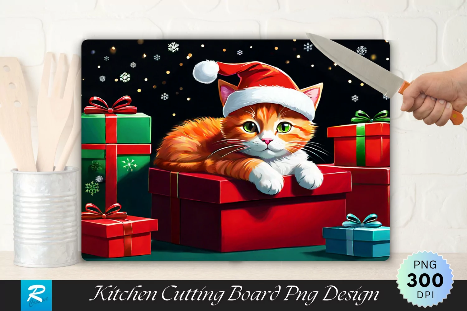 Christmas Cat Peeking from Gifts Cutting Board PNG example image 1
