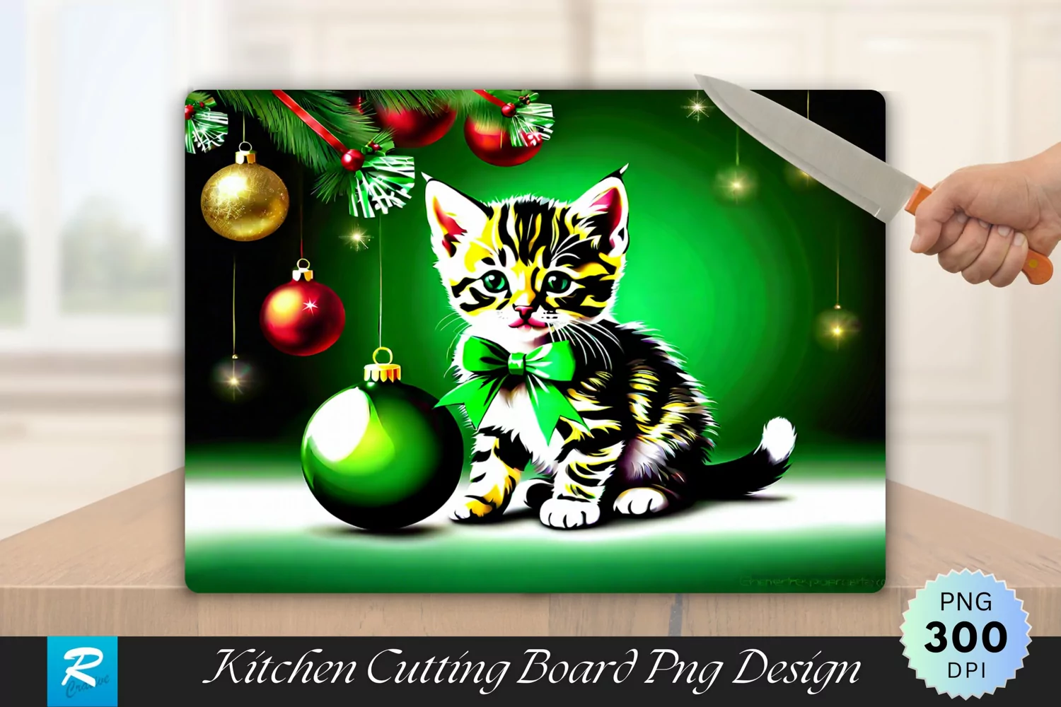 Tabby Kitten with Green Christmas Ornament Cutting Board PNG example image 1