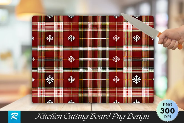 Snowflakes Holiday Decor Digital Download Kitchen Decor Snowflake Design Plaid Pattern Sublimation Design Christmas Cutting Board Classic Plaid Festive Cutting Board