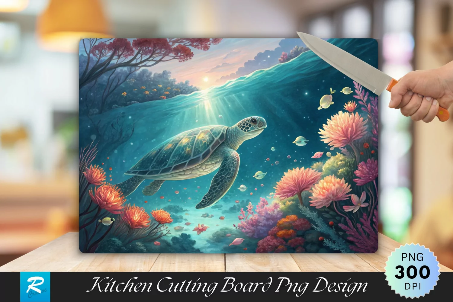 Underwater Serenity Turtle and Flora Cutting Board PNG example image 1