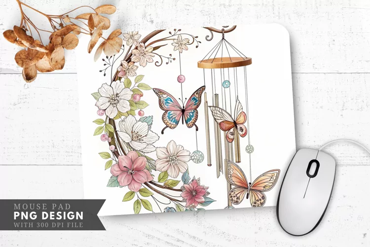 Butterfly Blossom Wind Chime Mouse Pad PNG Design example image 1