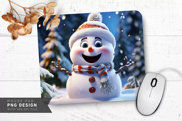 Holiday Decor Winter Decor Snowman Design Sublimation Design Smiling Face Snowy Branches Christmas Mousepad Winter Mousepad Snowman Mousepad Festive Mousepad