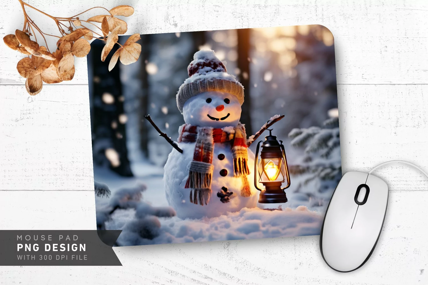 Christmas Design Winter Decor Holiday Gift Snowman Art Lantern Design Forest Winter Scene Mousepad Sublimation Winter Mousepad Snow-covered Forest Snowman Holding Lantern