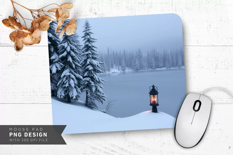 Christmas Snowflakes Holiday Decor Digital Download Winter Decor Sublimation Design Mousepad Snowy Trees Frozen Lake Glass Mousepad