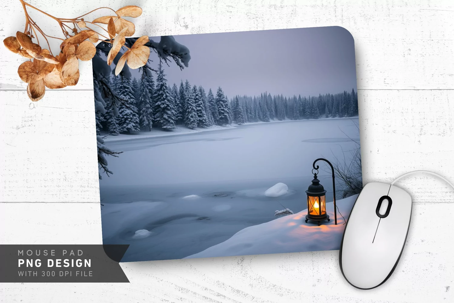 Frozen Lake and Snowy Trees Mouse Pad PNG example image 1