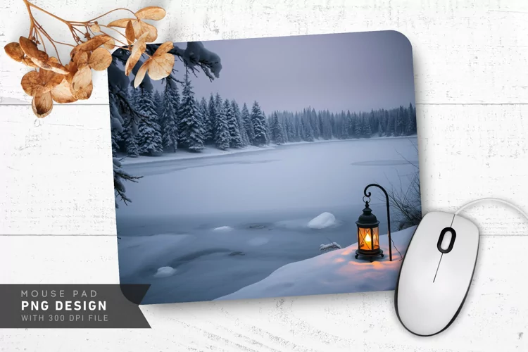 Christmas Snowflakes Holiday Decor Digital Download Winter Decor Sublimation Design Mousepad Snowy Trees Frozen Lake Glass Mousepad