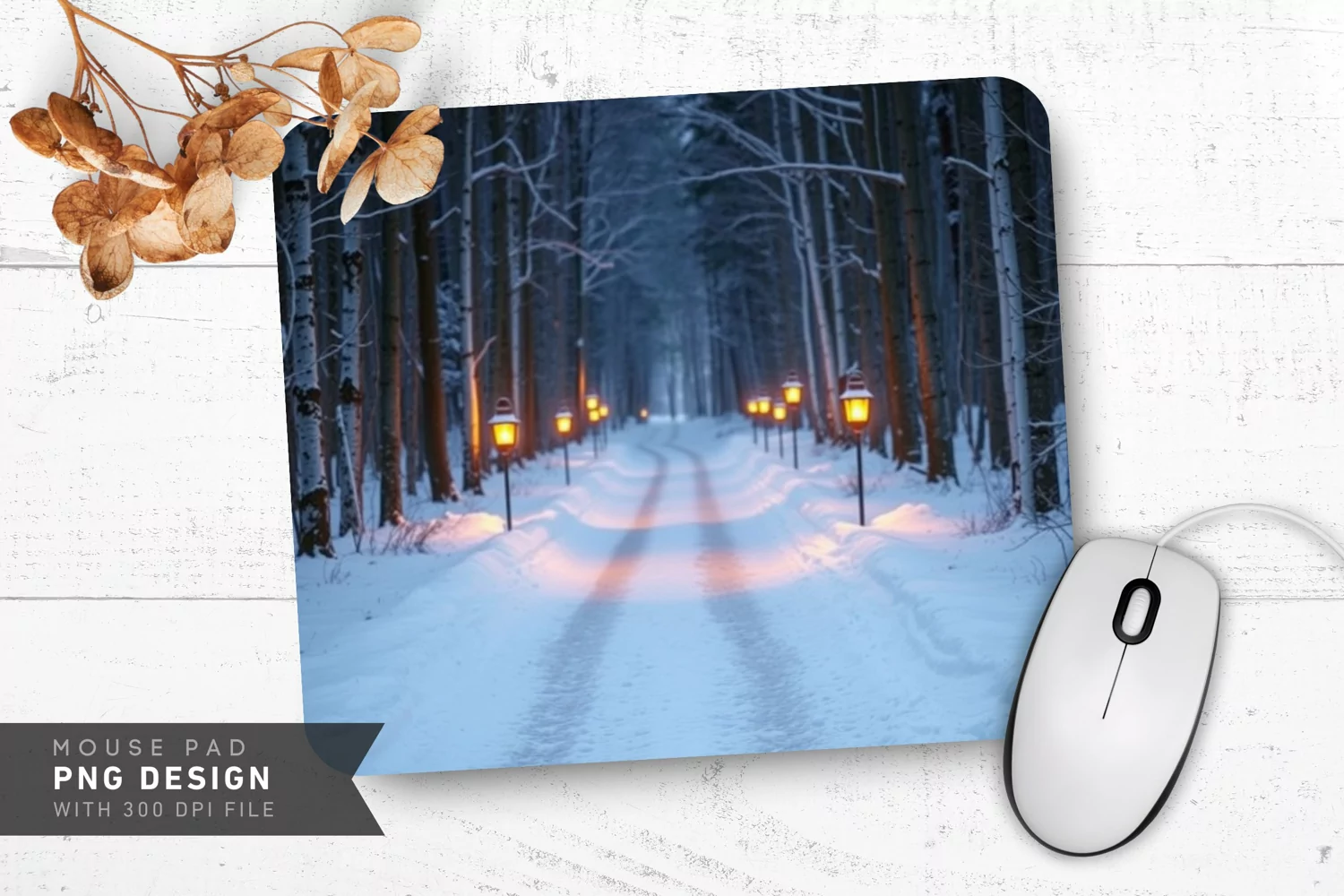 Holiday Decor Sublimation Design Snowy Forest Forest Decor Snow-covered Trees Mousepad Sublimation Winter Mousepad Winter Path Lantern-lit Path Lantern Light