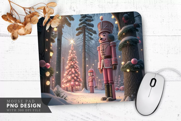 Christmas Mouse Pad Winter Wonderland Mouse Pad Pink Nutcracker Art Pink Christmas Mouse Pad Nutcracker Mouse Pad Holiday-themed Mouse Pad Festive Mouse Pad Snowy Forest Mouse Pad Festive Pink Nutcracker Mouse Pad Pink Nutcracker Sublimation Design