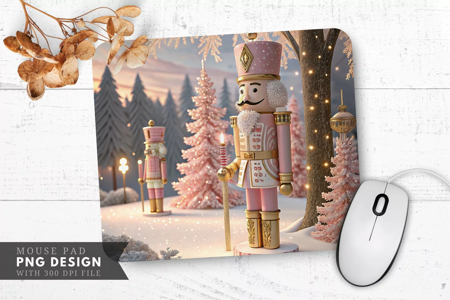 Sublimation Designs Holiday Sublimation Designs Christmas Mouse Pad Sublimation Nutcracker Christmas Decor Nutcracker Sublimation Designs Illuminated Trees Pastel Pink And Gold Christmas Nutcrackers Frosted Snow Mouse Pad Pink And Gold Christmas Decor Illuminated Christmas Trees
