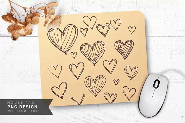 Doodle Hearts on Kraft Mouse Pad PNG Design example image 1
