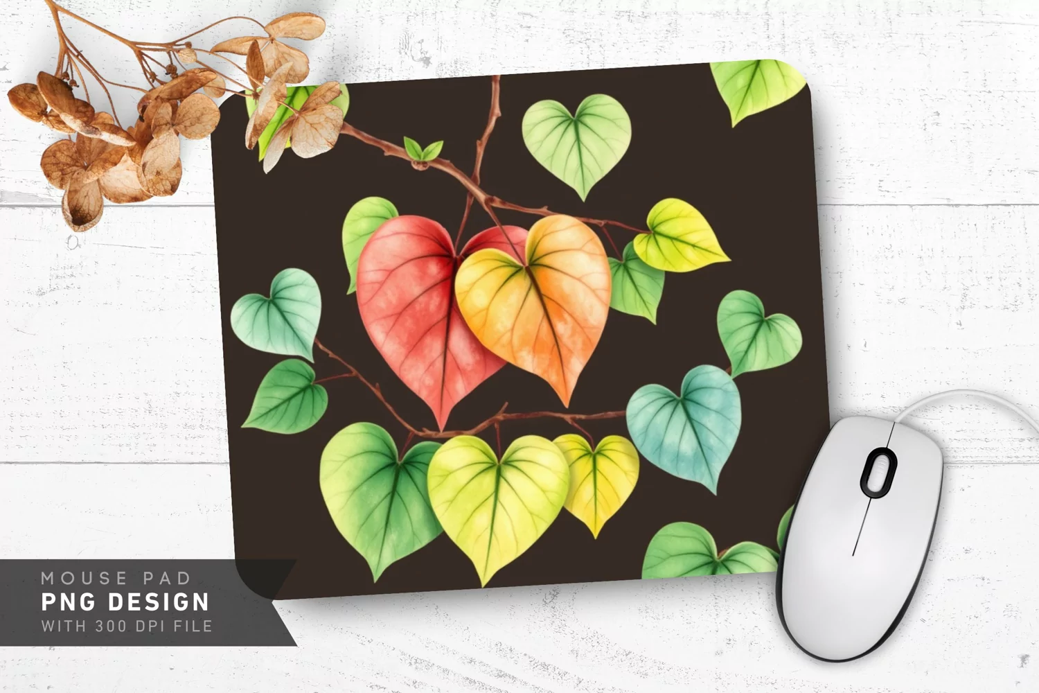 Floral Design Digital Download Kitchen Decor Heart Wreath Printable Art Sublimation Design Personalized Gift Mousepad Sublimation Custom Mousepad Heart Branch Wreath
