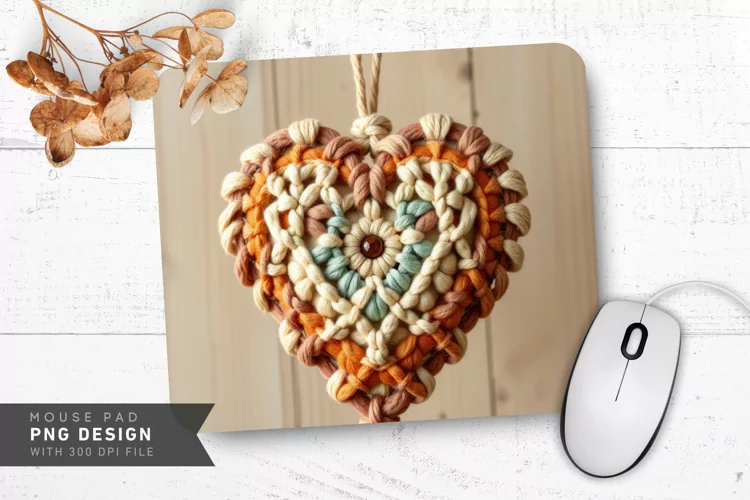 Digital Download Custom Design Boho Style Office Accessories Heart Design Home Office Decor Macrame Decor Mousepad Sublimation Personalized Mousepad Macrame Heart