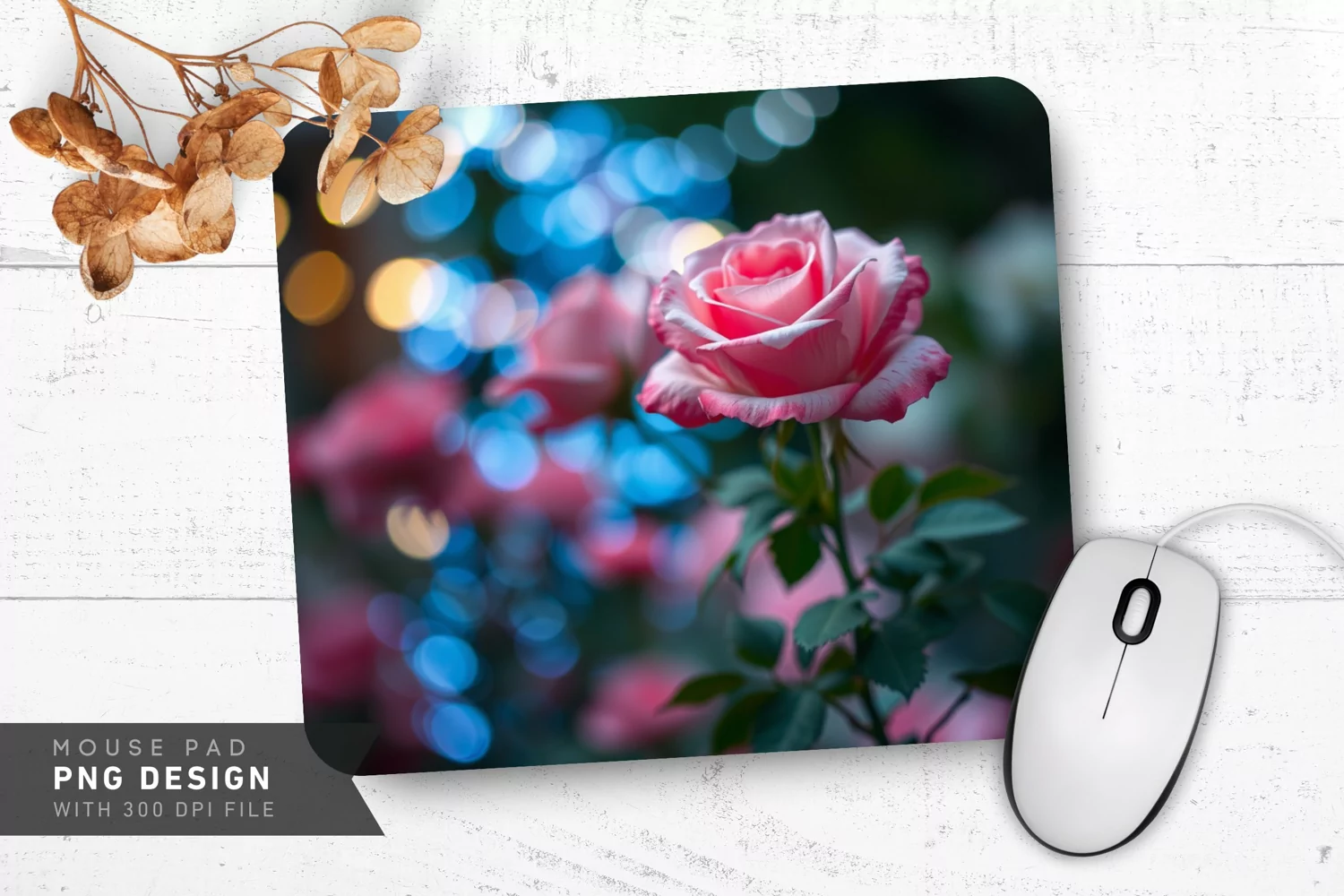 Soft Roses and Lights Mouse Pad PNG Design example image 1