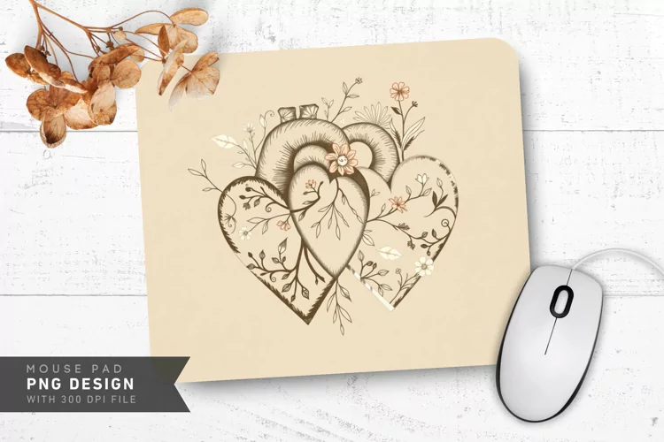 Botanical Heart Pattern Mouse Pad PNG Design example image 1