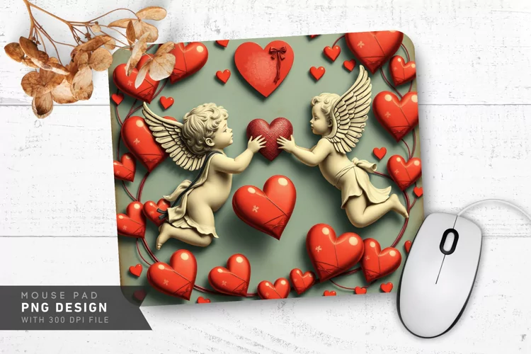 Vintage Style Heart Illustration Sublimation Design Cupid Design Sublimation Mousepad Heart Motif Cupid Art Mousepad Png Vintage Mousepad Custom Mousepad