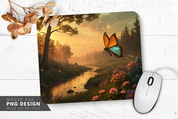 Similar Design Products to Glowing Butterfly in Enchanted Forest Mouse Pad PNG Design