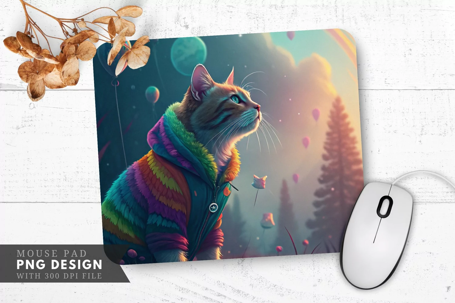 Dreamy Rainbow Cat Mouse Pad PNG Design example image 1
