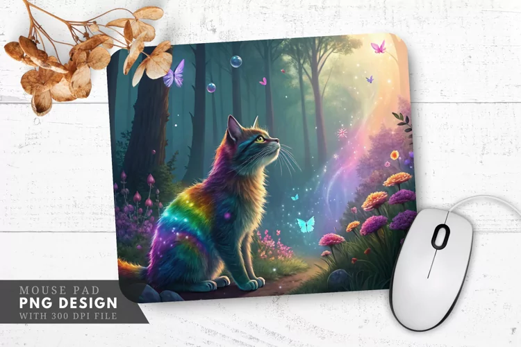 Enchanted Rainbow Cat Mouse Pad PNG Design example image 1