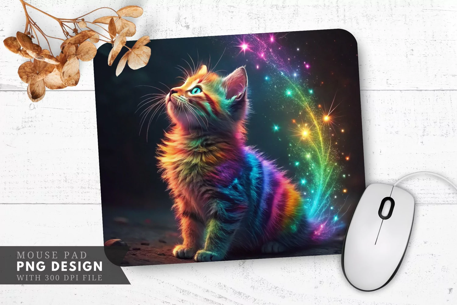 Enchanted Rainbow Cat Magical Sparks Mouse Pad PNG Design example image 1