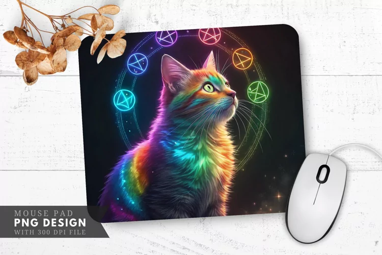 Sublimation Mouse Pad Design Sublimation Mouse Pad Rainbow Cat Sublimation Rainbow Cat Mouse Pad Rainbow Cat Design Rainbow Cat Art Cat Art Mouse Pad Magical Symbols Mouse Pad Cat With Magical Symbols Magical Symbols Art