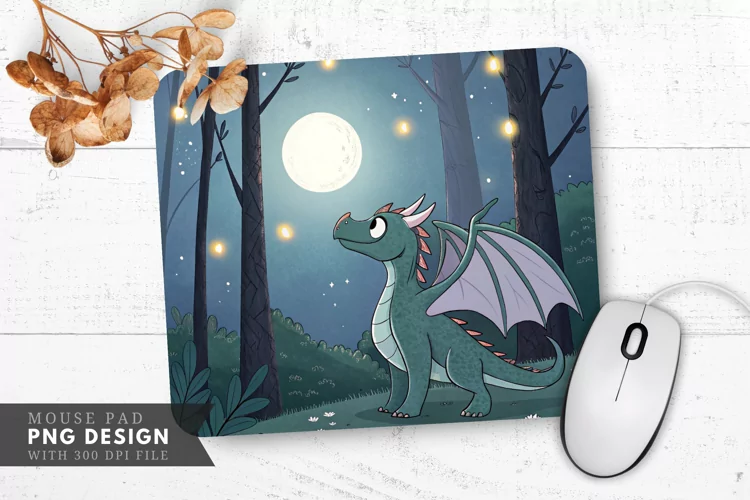 Enchanting Dragon in a Moonlit Forest Mouse Pad PNG Design