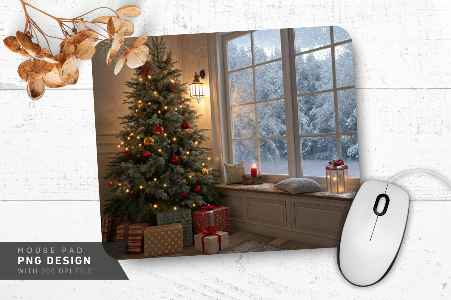 Similar Design Products to Cozy Christmas Morning with Tree and Gifts Mouse Pad PNG