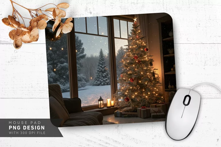 Cozy Christmas Night with Tree Mouse Pad PNG Design