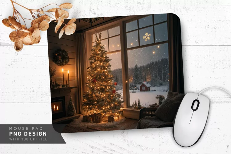 Cozy Christmas Night with Tree Mouse Pad PNG Design
