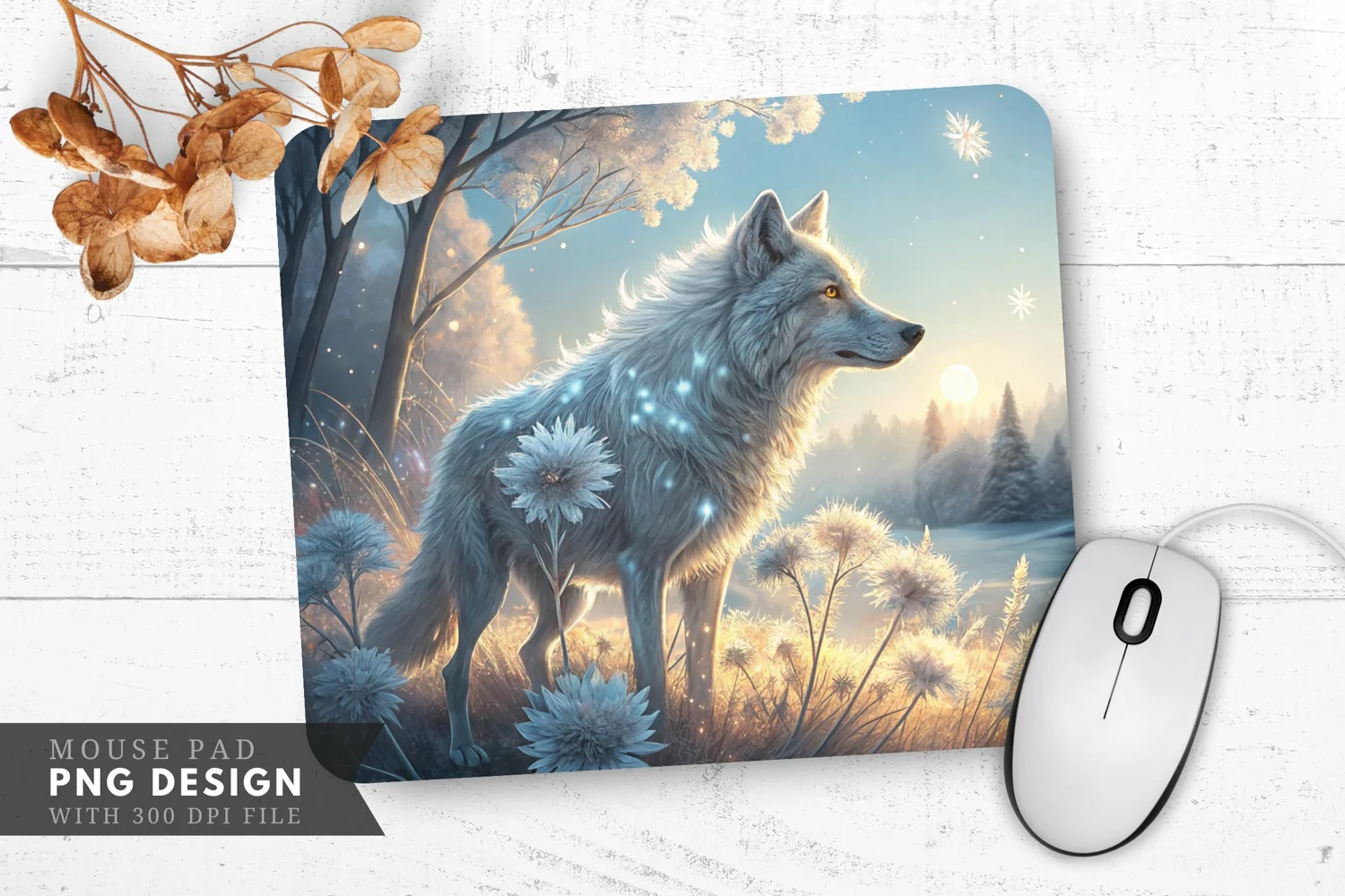 Enchanted Wolf Among Ice Flowers Mouse Pad PNG Design example image 1