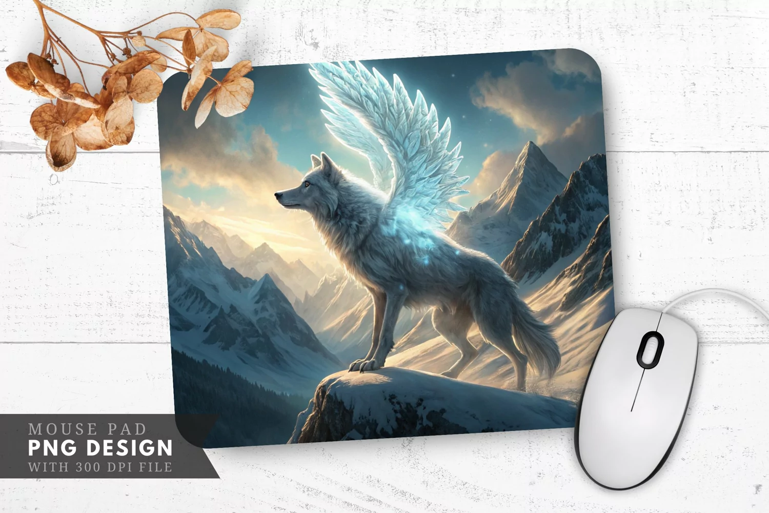 Frosted Flight A Glowing Wolf Over Snowy Peaks Mouse Pad PNG example image 1