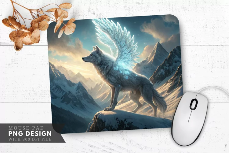 Similar Design Products to Frosted Flight A Glowing Wolf Over Snowy Peaks Mouse Pad PNG